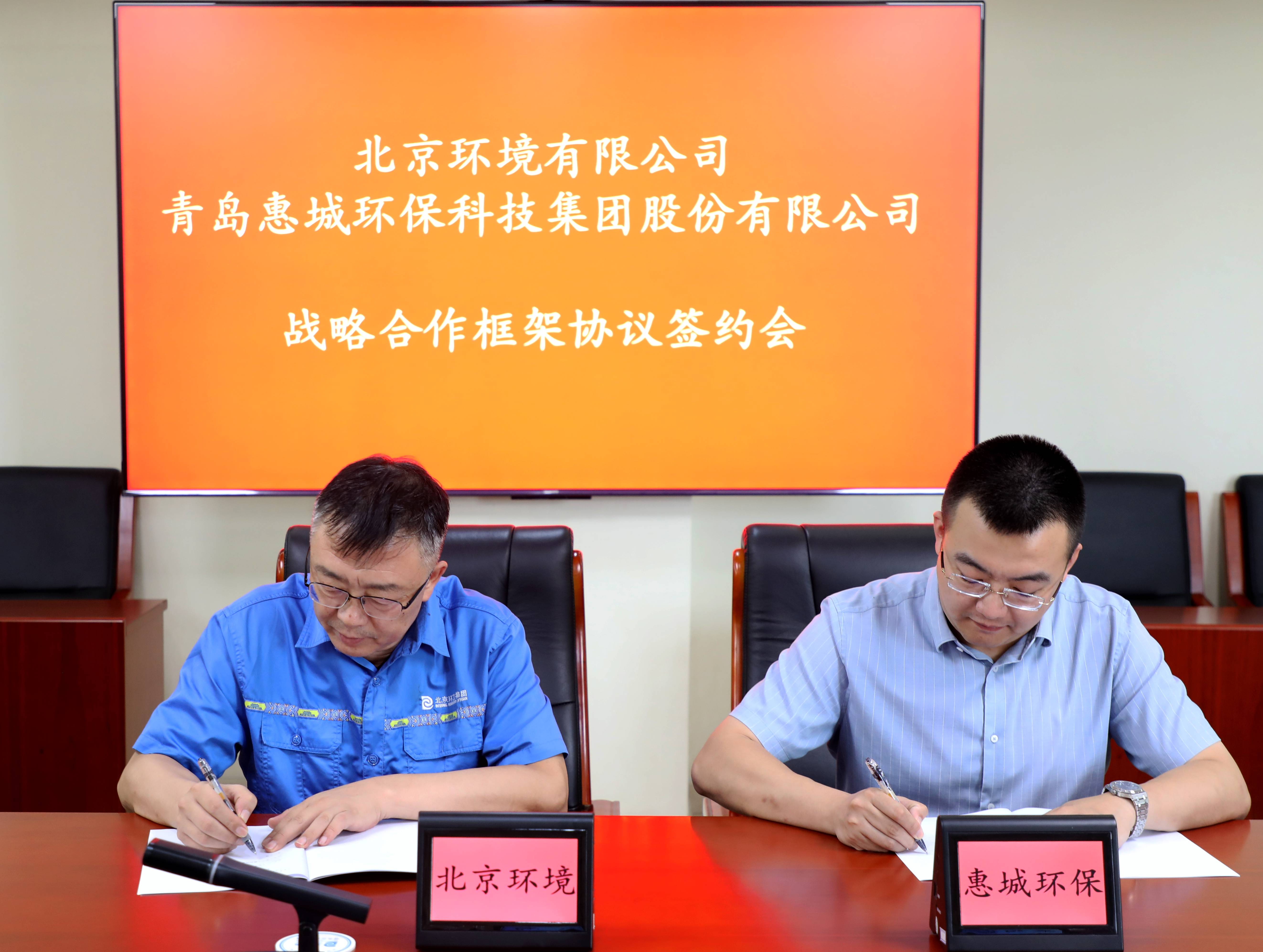 8月2日,青島惠城環保科技集團股份有限公司(簡稱“惠城環?!保┡c北京環境有限公司(簡稱“北京環境”)成功簽署戰略合作協議,惠城環??偨浝砹皱?、北京環境總經理韓曉鵬代表雙方鄭重簽約,青島惠城環境科技有限公司(簡稱“惠城環境”)總經理張秋艷等出席會議。