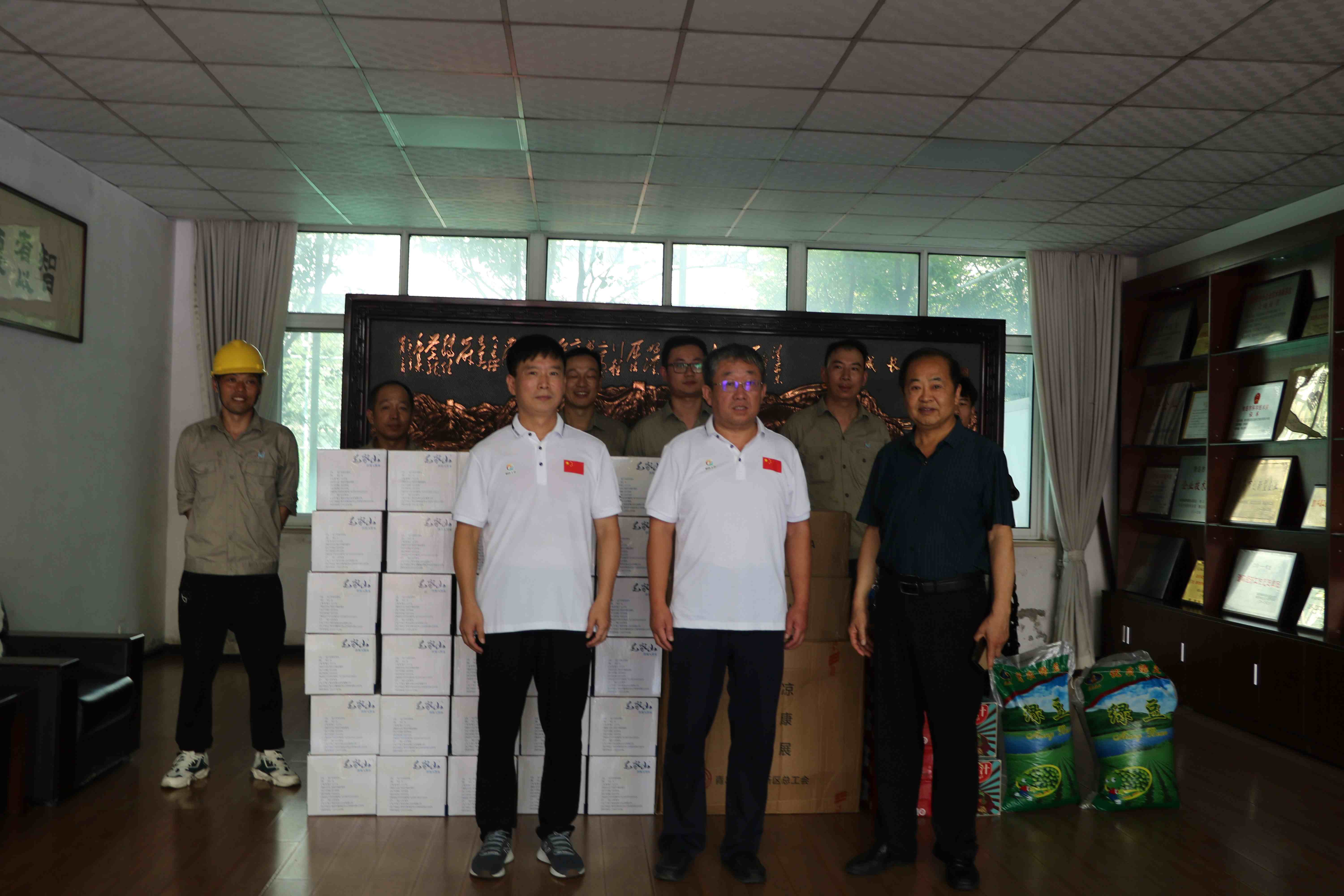 ???? 83日,西海岸新區(qū)總工會朱主席、黃島街道工會黃主席一行蒞臨我公司淮河路廠區(qū),開展“送清涼”活動,慰問一線職工,保障一線職工健康權(quán)益。公司工會主席程兆溪、副主席李明珠陪同,看望了淮河路廠區(qū)高溫作業(yè)下的一線員工,為他們送去礦泉水、飲料、毛巾、綠豆等消暑慰問品,將工會關(guān)懷送到基層。