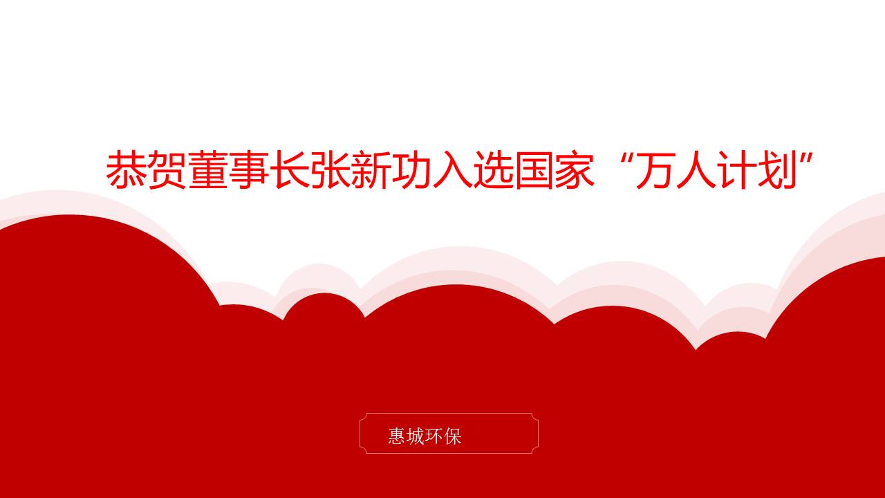 日前,中組部公示第二批國家“萬人計劃”領軍人才人選,青島惠城環保科技股份有限公司張新功董事長獲得“科技創業領軍人才”榮譽稱號,全國僅336人獲此殊榮。