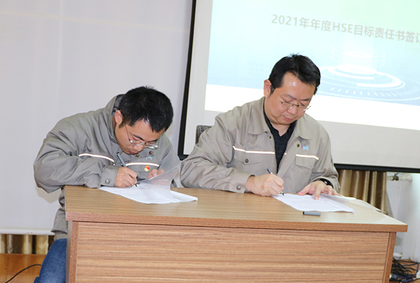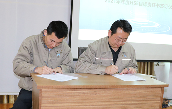 隨后公司總經(jīng)理與生產(chǎn)管理部、HSE管理部,生產(chǎn)管理部與設(shè)備管理部,設(shè)備管理部與維修維保方簽署了年度HSE責(zé)任書。